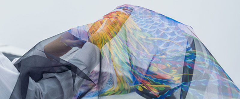Specifically, we employed Epson's Fujimi Solution Center (Japan) to print on ultra-thin materials such as silk organdy1, thus expanding the palette of materials that can be printed to realize YUIMA NAKAZATO's creative vision.