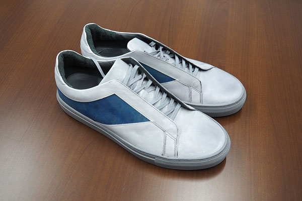 For GLACIER, non‑woven fabric sheets made from fiberized sewing offcuts and used garments (collected by Mr. Nakazato during an earlier visit to Kenya) were incorporated into designs. Mr. Nakazato notes that the sheets’ texture recalls traditional Japanese ink painting and washi paper. To deepen that reference and to evoke the aurora, he applied urushi lacquer to sheet surfaces, producing a subtle shimmer. The result is a cohesive interplay of material, color, and texture across footwear and garment details, giving the recycled sheets a renewed aesthetic value.