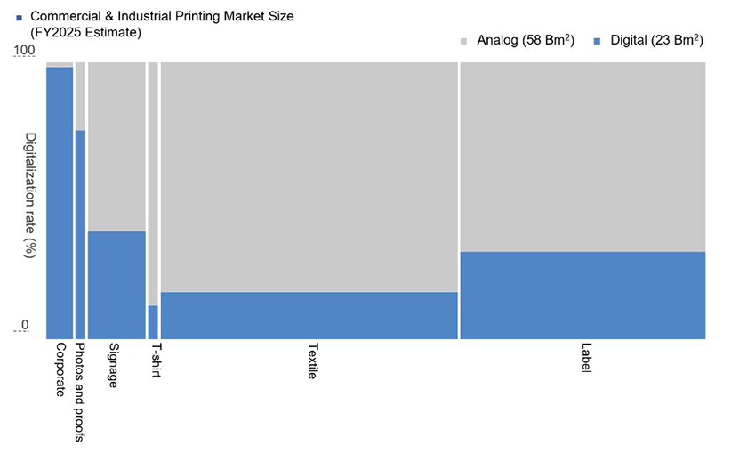 The commercial and industrial printing market is shifting from analog to digital printing. In applications such as signage, textiles, and labels, analog printing still holds a high share, presenting growth opportunities through the expansion of digital printing.