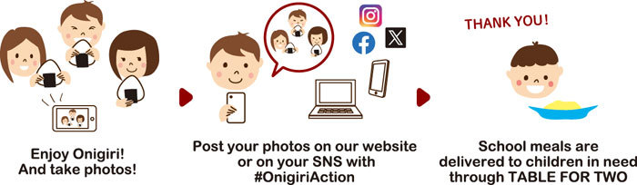 Under the Onigiri Action scheme, each photo of onigiri, a Japanese rice ball, posted to the campaign website or on social media (Instagram, X [formerly Twitter], Facebook) with the hashtag #OnigiriAction helps provide five school meals to children in need in Africa and Asia through TFT.
