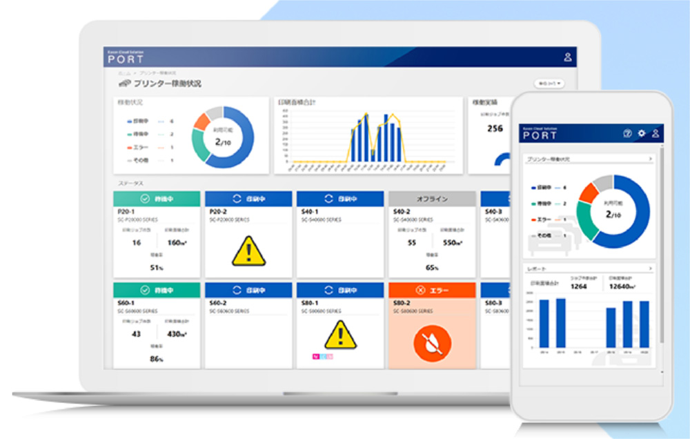 Epson Cloud Solution PORT was developed to solve production issues involving large-format printers and thus increase the efficiency of our customers' operations. The name was inspired by a desire to develop a solution as a "port" (harbor) from which to deliver Epson value to customers in the commercial and industrial printing industry.