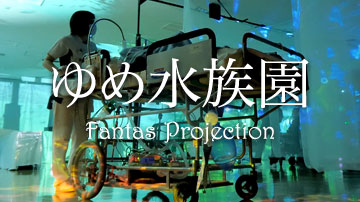 ゆめ水族園は、映像、音楽、揺れるスクリーンを組み合わせ、やわらかな空間を作り、豊かな感覚刺激体験をお届けする活動です。