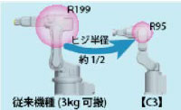 -小さなヒジ(第3関節可動部の出っ張り※3)が当社従来機PS3-AS00の1/2