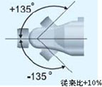 | 最大動作範囲 | J1関節(旋回) ±170°(ストッパー無し±180°) J2関節(下腕振り) -160°、+65° J3関節(上腕振り) +225°、-51° J4関節(手首旋回) ±200° J5関節(手首振り) ±135° J6関節(手首回転) ±360° |