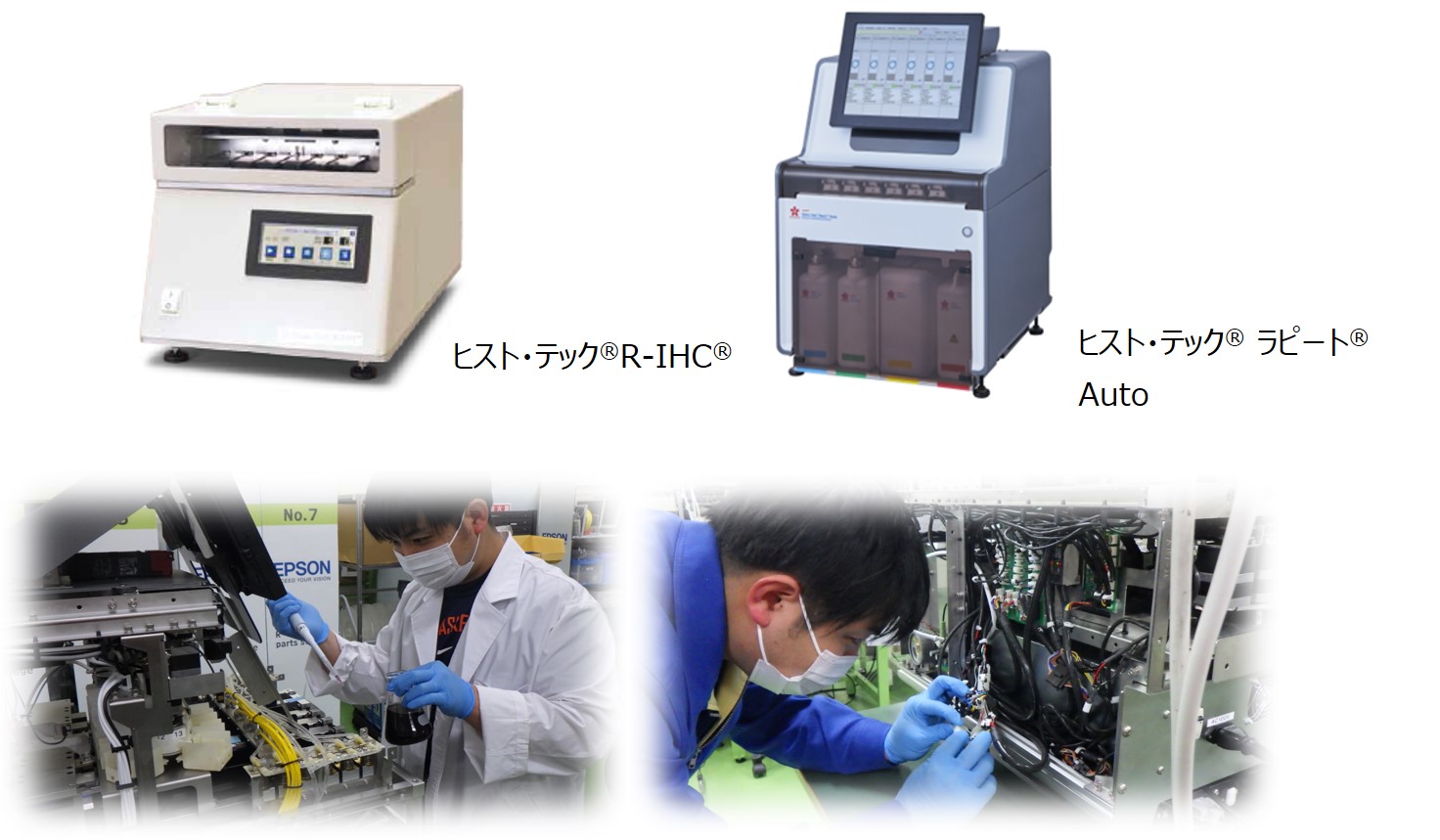 電界撹拌染色装置【ヒスト・テック®R-IHC®】自動染色装置【ヒスト・テック® ラピート® Auto】として製品化を実現し、サクラファインテックジャパン㈱より販売しています。