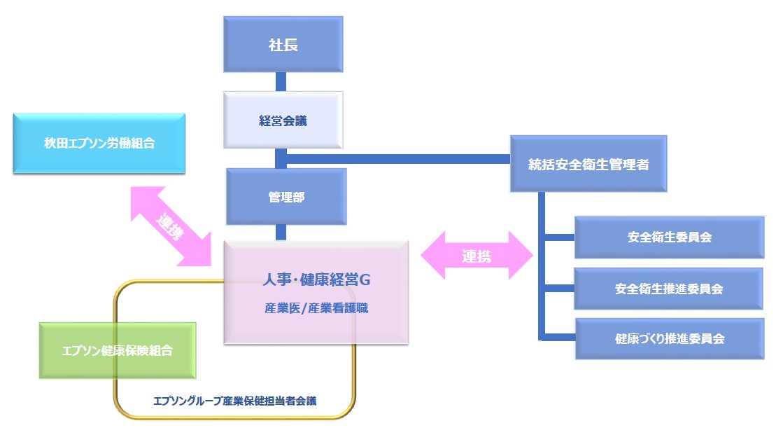 【目的】会社にとって社員の健康が最重要と考え、経営理念、エプソングループ労働安全衛生基本方針およびエプソングループ健康経営宣言に基づき、社員の健康状態の向上とともに、仕事にやりがいを感じ、いきいきと働いている状態の実現を目指します。その結果、業績向上や企業価値向上にもつながると考えます。