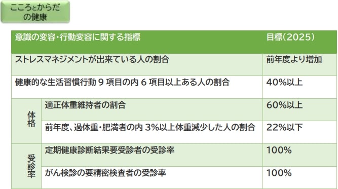 2001年以来、健康に関する中期計画を策定し、定期的に見直しています。2022年度は定期更新の時期に当たり、「健康Action2025」を制定しました。