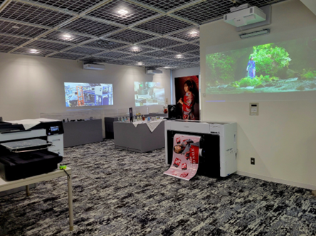 東北エプソンが作っているものが何に繋がっているのかを展示品やプロジェクターで表現し、会話が弾む空間になっています。