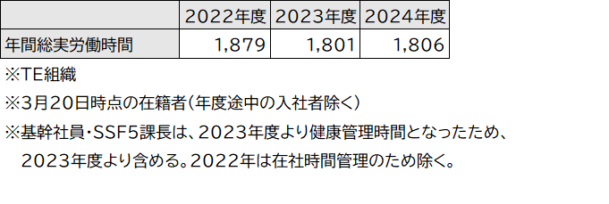 年間総実労働時間 2025年度目標:1,845時間