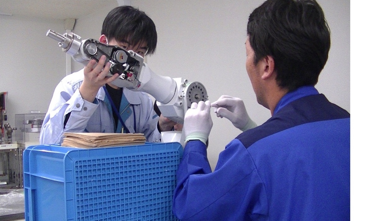 製造に必要な知識・技能を早期に身につけた「卓越技能者」を育成するため、技能五輪(精密機器組立て/メカトロニクス/プラスチック金型/電子機器組立の4職種)に取り組んでいます。選抜された社員が、東北エプソン内の訓練場とセイコーエプソン本社にて、3ヵ年計画で訓練しています。技能五輪経験のある若手と熟練社員のコーチのもと、大会でのメダル獲得に向け、セイコーエプソン及び他社との合同訓練会を通して切磋琢磨しながら訓練しています。技能五輪経験者は、技能面はもちろん企業人としても成長し、管理監督者やエンジニアとして、東北エプソンのキーマンとなり、ものづくりを革新し続けています。