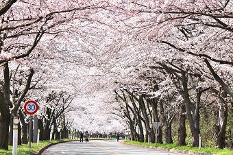 構内あるアーチ状に桜が覆う通路を開花時期に限定し一般公開しています。近隣の介護施設や、保育園の皆さまをお招きし、歩行が困難な方には車の中から桜のアーチを見学していただいたり、車の通らない通路をのびのびと桜を楽しんでいただいております。