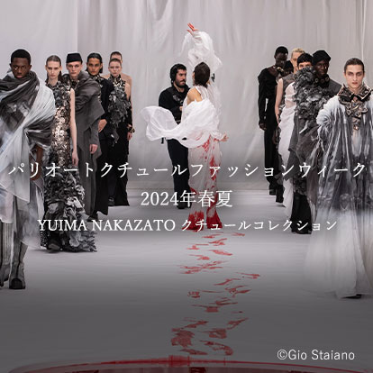 2024年1月にフランスで行われた、パリオートクチュールファッションウィーク2024年春夏コレクションにて、エプソンはYUIMA NAKAZATOの新コレクション「UTAKATA」の衣装制作の一部をサポートしました。