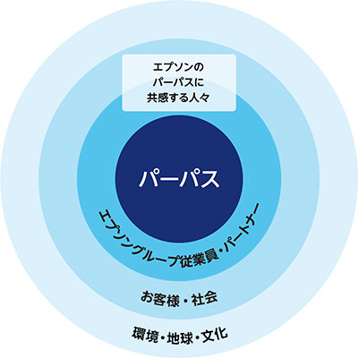 パーパスは、エプソンが社会に対してどのような価値を提供する存在であるかを定めるとともに、エプソンならではの存在意義と志を社内外に示すため、制定されました。