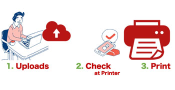 PCやタブレット、スマホからファイルアップロードで簡単プリント、ドライバー不要の印刷機能で、テレワーカーやビジネスマン・学生・フリーランサーにストレスフリーなプリント体験を提供します。低価格高品質のカラープリントが特徴で、プリント費用は、施設利用料とあわせて手間なく自動でキャッシュレス決済されます。