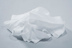 そこで、エプソンはドライファイバーテクノロジーを応用し、コットン衣類の縫製過程で発生した端材をアップサイクルした新たな包装材を実用化しました。