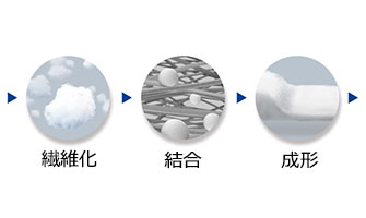 ドライファイバーテクノロジーはエプソン独自の技術で、古紙をはじめとするさまざまな繊維素材について、用途に合わせた繊維化、機能性材料との結合、成形を行うことで高機能化を実現しています。使用済みの紙から新たな紙を作る「PaperLab」をすでに製品化し、さらに大型製造装置により、インクジェットプリンター用インク吸収材、吸音材、エプソン製品の緩衝材などの生産を行っています。
