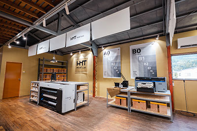 「HHT PRINT Lab.」は、エプソンの最新のプリンターやサービスを活用して関美工堂が運営するもので、ラベル・シール・ポスター・写真などの商業向け印刷を、事業者や生産者、学生などが身近な場所で手軽に実施できる環境を提供します。初めての方も、スタッフのサポートにより、安心してデジタル印刷を活用したモノづくりを楽しむことができます。