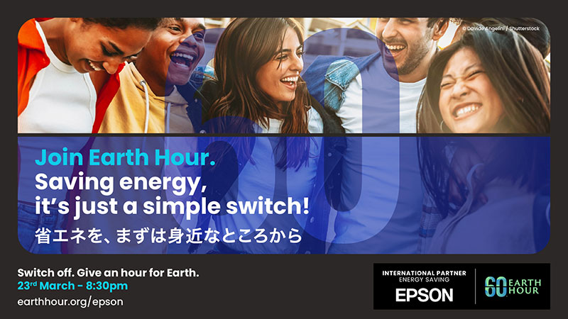 エプソンは、世界各地のエプソングループ販売会社と協力し、26言語で参加を呼びかけることで省エネ意識の向上を促進します。また、『EARTH HOUR 2024』当日には、シンガポール(開催予定地:Wisma Atria Shopping Mall)および日本(開催予定地:アーバンドック ららぽーと豊洲)でのイベントにブース出展します。イベント詳細はエプソンEARTH HOURウェブサイトをご覧ください。