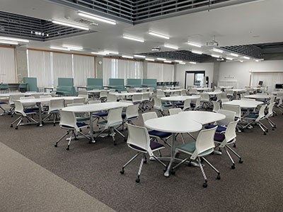 対象施設となっているNITech Hall 2階ラーニング・コモンズは主にアクティブラーニング授業2で活用されており、「自ら進んで学んでいく力」を養う場です。また年間の利用者数も多く、学びとコミュニケーションが盛んに行われている施設です。本施設の愛称は「EPSON STUDIO」となります。