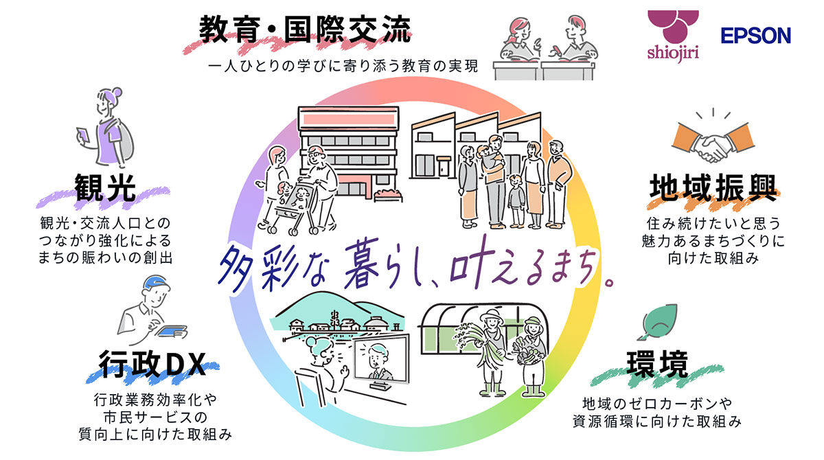 塩尻市とエプソンは、地域事業者と連携して多種多様な地域資源を組み合わせることで、塩尻を豊かに彩り、住民に多様な生活の選択肢を提供していきます。