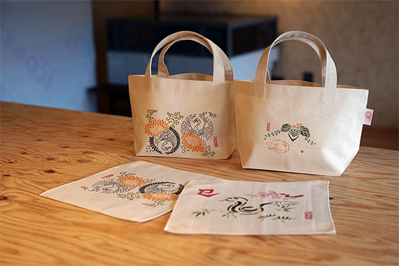 使用後の紙資源と未利用の間伐材を原料として紙糸化し、その糸によって作られたサステナブルな生地と、会津型や京友禅、加賀友禅など全国各地の伝統工芸を融合させて、Tシャツやバッグなどの商品を製作、販売しています。