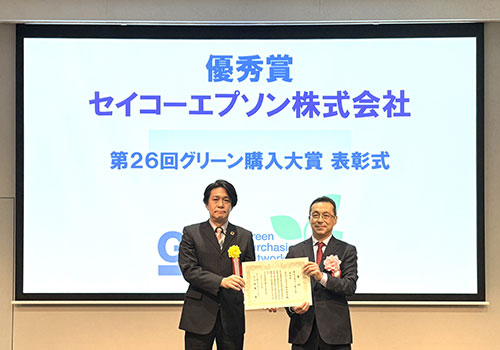 セイコーエプソン株式会社(以下 エプソン)は、グリーン購入ネットワーク(事務局:東京都千代田区 会長:梅田靖)が主催する、「持続可能な調達」を通じてグリーン市場の拡大に貢献した取り組みやSDGsの目標達成に寄与する取り組みを表彰する「第26回グリーン購入大賞」において、大企業部門で「優秀賞」を受賞しましたのでお知らせします。