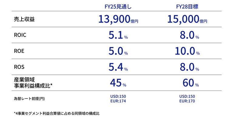 - ROICを経営の規律として資本の最適配分を徹底、2028年度目標はROIC8%