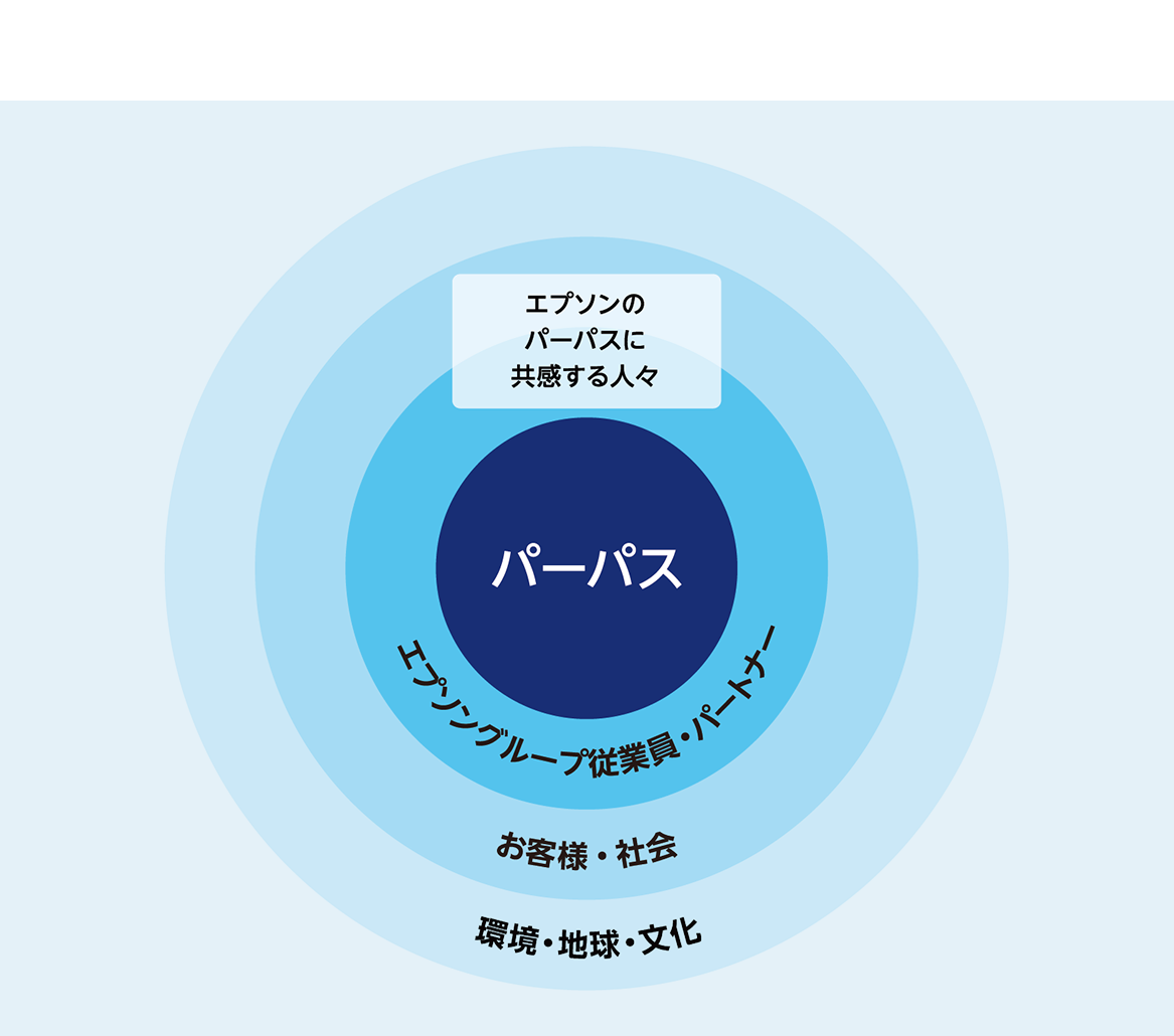 パーパスの実現は、エプソングループの従業員だけでは成し得ません。お客様やパートナー、社会へと共感を拡げていくことで、地球環境の保全や文化の発展に貢献します。そして、人と地球が豊かに彩られる未来を皆さまと共に実現していきます。