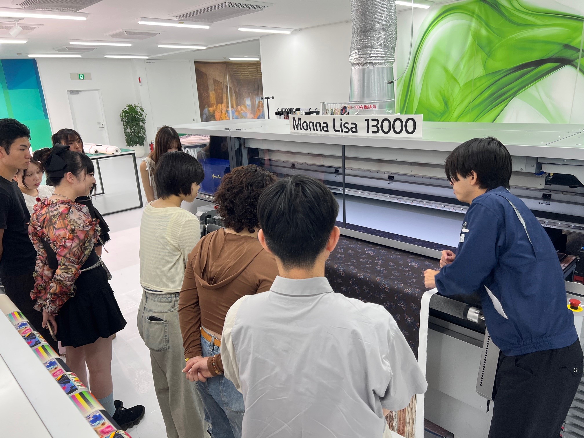 学生の皆さんには、長野県諏訪郡富士見町にある当社の施設「ソリューションセンター富士見」を訪問していただき、最新技術に触れながら、環境に配慮した工程を学び、オリジナルデザインの布プリントを体験。卒業制作に向けたこだわりを追求した作品づくりに活用しています。