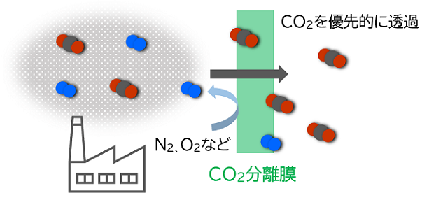 インクジェットヘッド等の薄膜技術を応用し、CO2を優先的に透過する分離膜を開発しています。今後は小型・低エネルギーなシステムで、高効率なCO2回収を目指します。