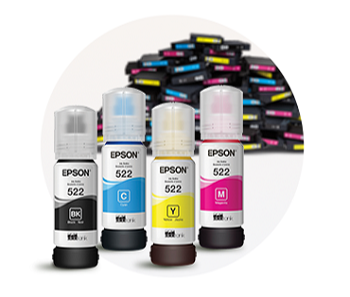 大容量インクタンク方式のインクジェットプリンターは、ボトルからタンクへインクを補充して使用します。従来のカートリッジ式に比べ、インクボトルは大容量のため、同じインク使用量であれば消耗品の交換頻度が低く、消耗品本体や包装に使用される資源を削減できます。