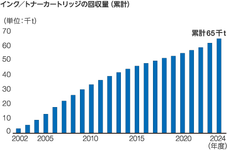 2008年4月から「インクカートリッジ里帰りプロジェクト」を国内プリンターメーカー共同で日本郵便と協力して行っています。全国約3,600の郵便局と自治体施設などに回収箱を設置し、各社の純正インクカートリッジを回収しています。
