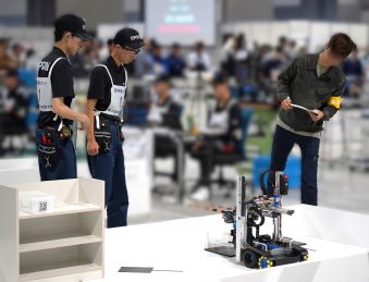 ものづくり企業であるエプソンは、製造に必要な知識・技能を早期に身につけた「尖った技能者※1」を育成するため、技能五輪訓練を活用しています。技能五輪に訓練生が挑戦できるのは入社2年目から連続2回までとし、短期集中訓練で全国レベルの技能習得を目指します。出場種目は、実業務に応用可能な「精密機器組立て」「プラスチック金型」「メカトロニクス」「電子機器組立て」「自律移動ロボット」「ウェブデザイン」「時計修理」「ITネットワークシステム管理」といった種目に挑戦し、毎年10~15人が全国大会へ出場しています。
