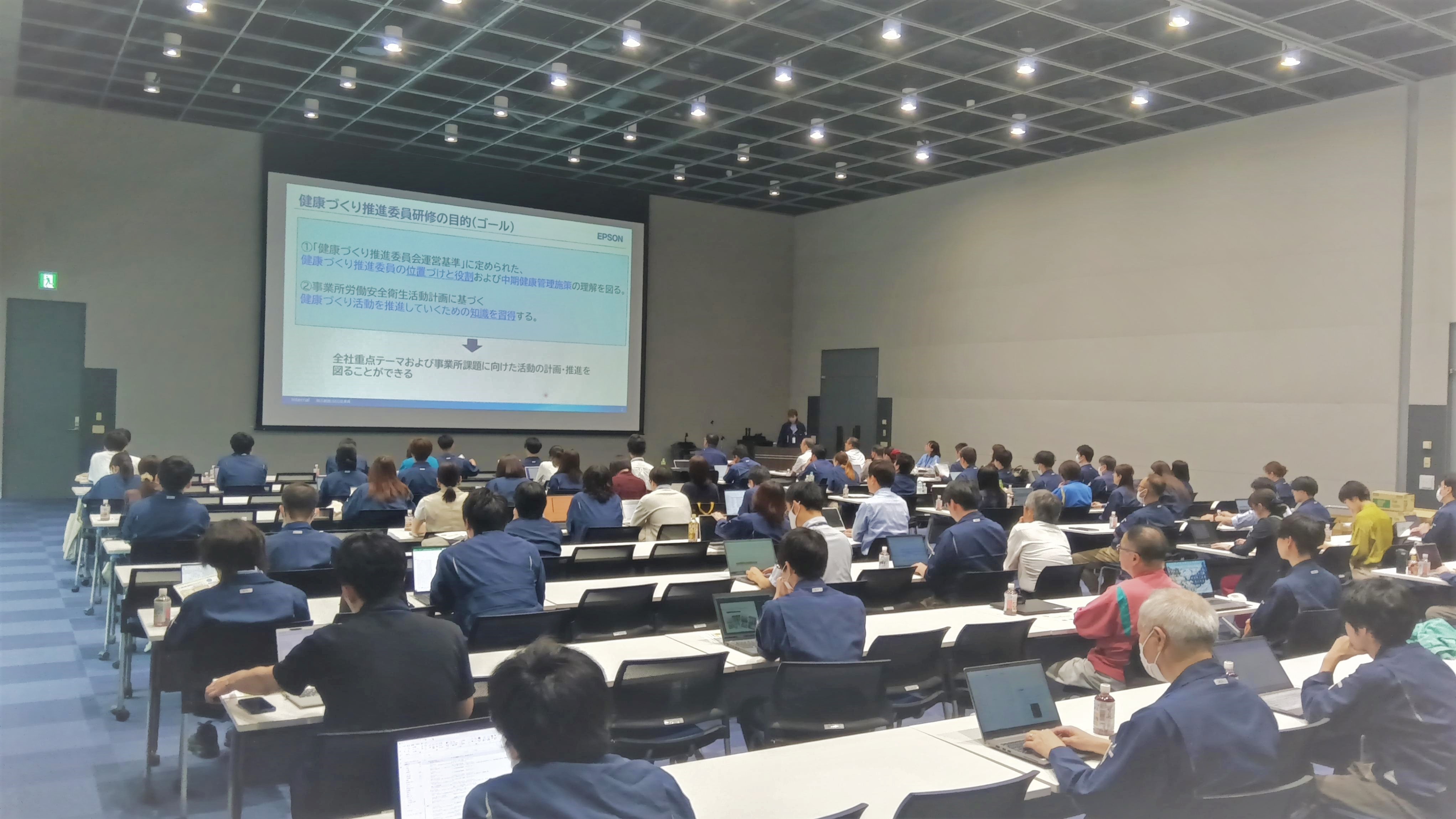 また、2024年度より全拠点をオンラインでつなぎ、全社一斉研修会を開催しています。研修会では、産業医によるヘルスリテラシー向上のための講義や、職場風土の醸成と健康保持増進を担う役割、さらに経営層からのメッセージを通じて、全社的な健康づくりの意識を高める場となっています。 2025年度は、342名が参加する大規模な研修会となりました。また「他事業所の活動事例を知りたい」という声が多かったことから、北海道、長野県の活動事例を取り上げ、地域や職場の特色を活かした取り組みが共有され、全社健康づくり活動の一体感と知識の底上げにつながっています。