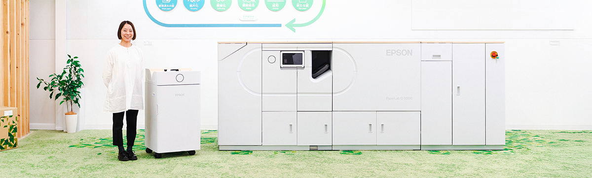 渡来:はい。PaperLabは印刷済みの紙から新しい紙を再生するエプソンを代表する環境製品です。私はこのPaperLabの新モデルのデザインを担当しました。世の中に大きなインパクトを与えた初代のPaperLabを、お客さまにもっと身近に感じていただき、オフィスでも使っていただける製品にするために「人と自然との共存を象徴する存在」を目指しました。環境を想う人々が自然と集まってくる、そんな世界観を「シンボルツリー」というコンセプトで表現しました。