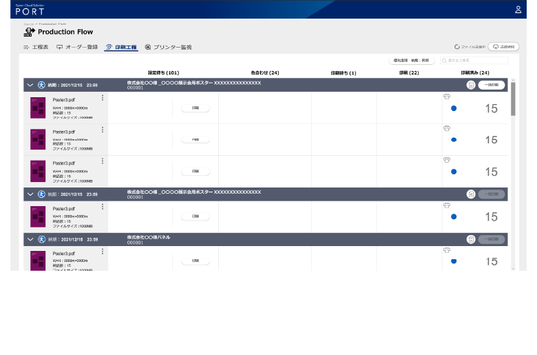 印刷現場に張り付いて印刷状況を確認しなくても済むように、遠隔地からでも素早く状況をチェックできるUIを提供しました。