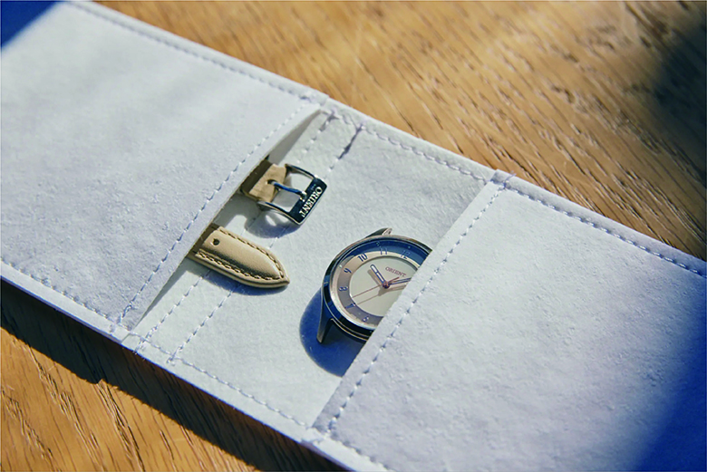 「ORIENT iO」 は、自分好みにカスタムを楽しみ、誰もがカジュアルにもフォーマルにも着こなせる新しいデザインシリーズです。ニュートラルなデザインとベーシックなカラーバリエーションでさまざまなスタイルを楽しむことができます。ファッションやシーンに合わせた自分好みの時計ができるだけでなく、一人一人のスタイルに合わせたプレゼントとしても最適です。ソーラー電池駆動・リサイクルパッケージで地球環境にも配慮した新しいウオッチです。