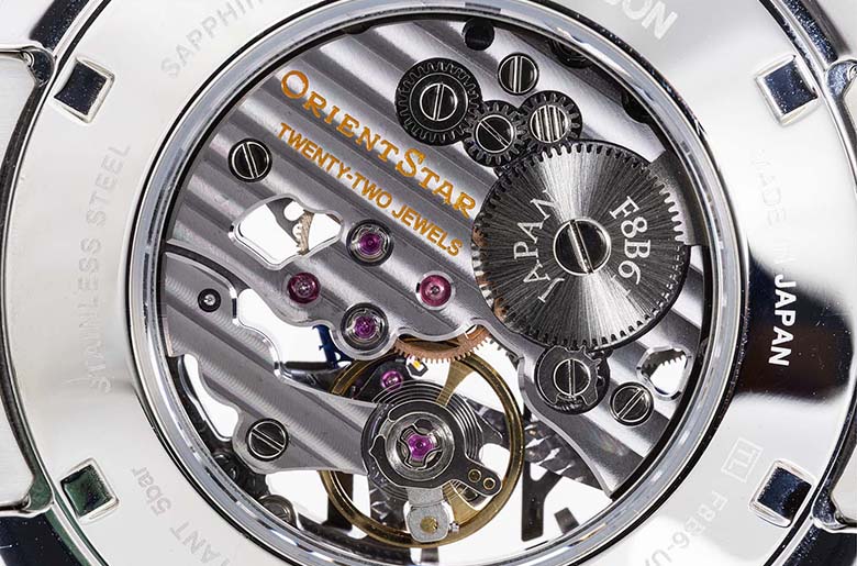 ケースの裏側から見えるムーブメントは、切削による美しい波目模様や面取り加工を施し、色調もグレー色にすることで丁寧かつ細部までデザインし、持つ人を楽しませ、所有する満足感を高めます。