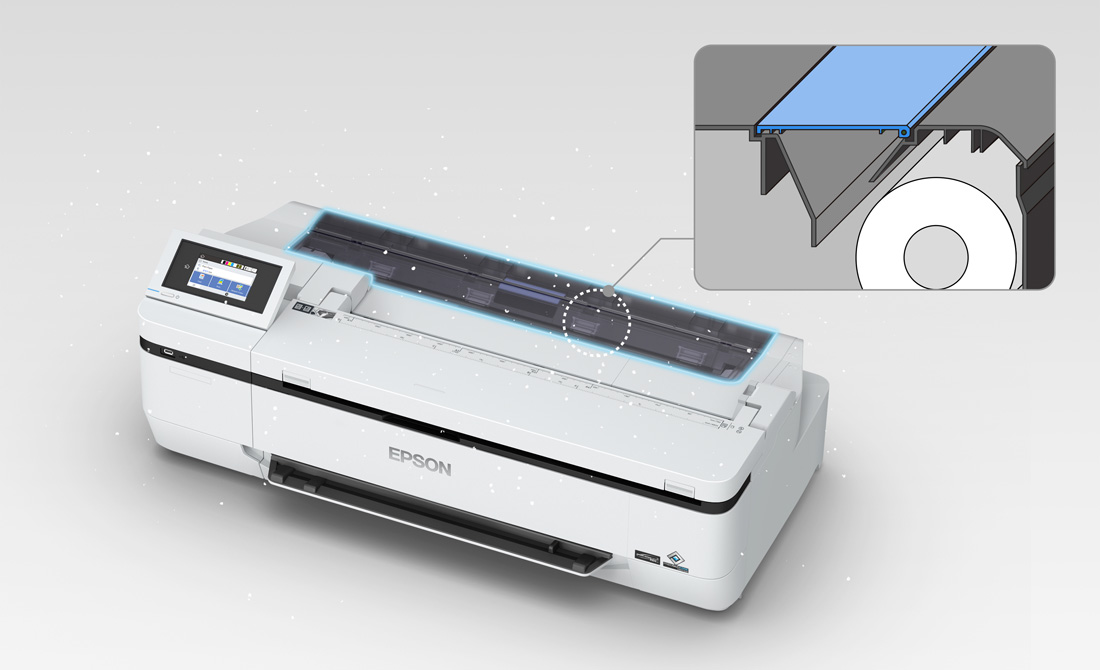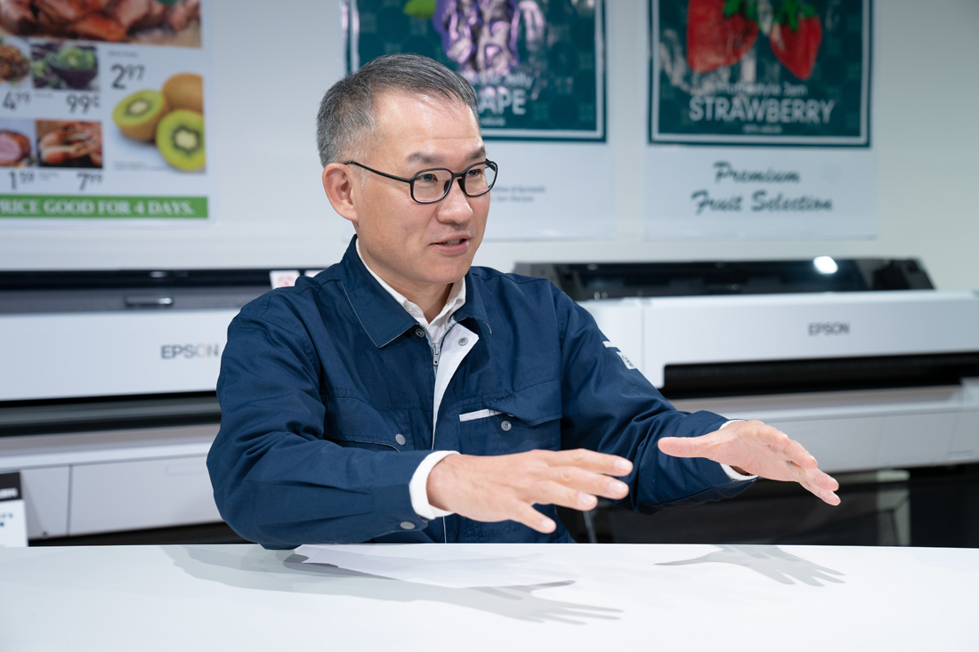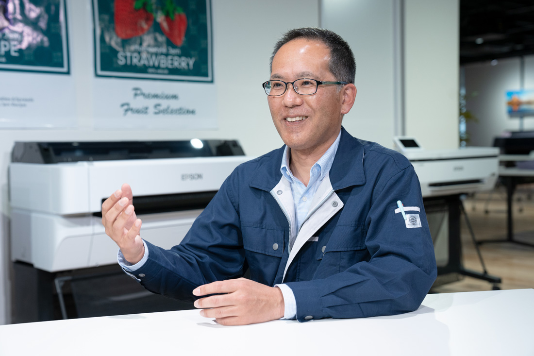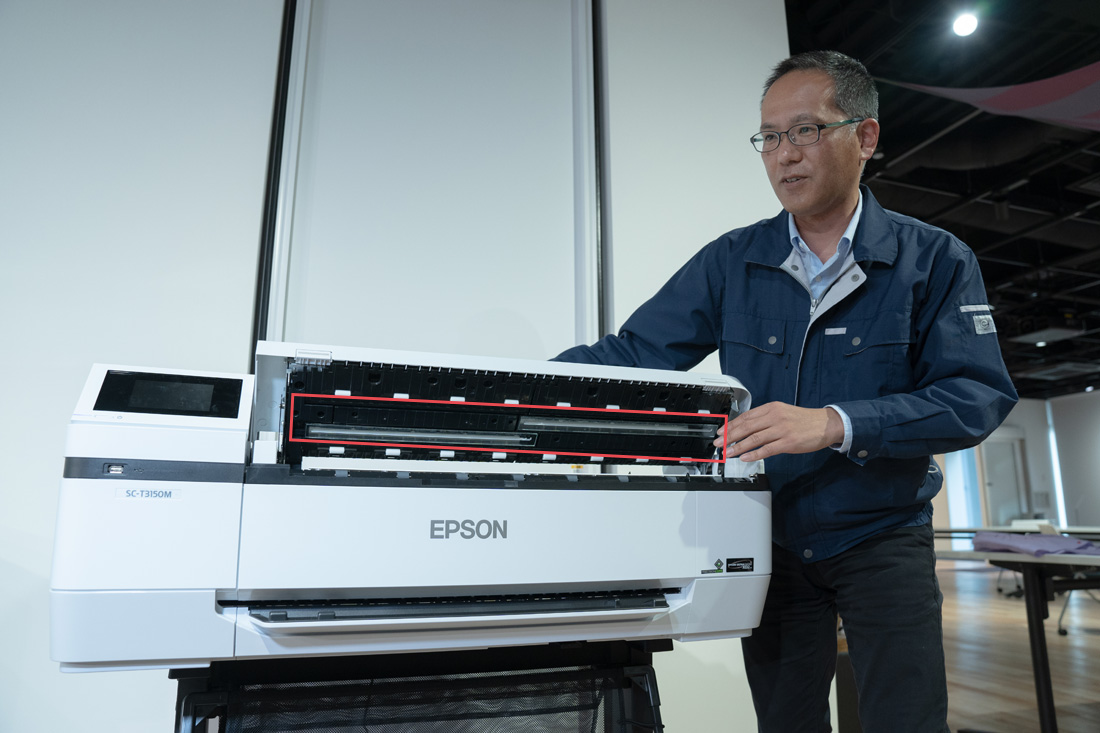 エプソンは、生活に根差した現場で使われる大判プリンター導入の敷居を下げるとともに、使い勝手を高めて、大判プリントの普遍的な良さを広めていきたい。これがエプソンの思いであり、クラス最小設置面積*、簡単・安心操作、防塵(ぼうじん)性を高めた大判プリンターの実現へとつながっています。