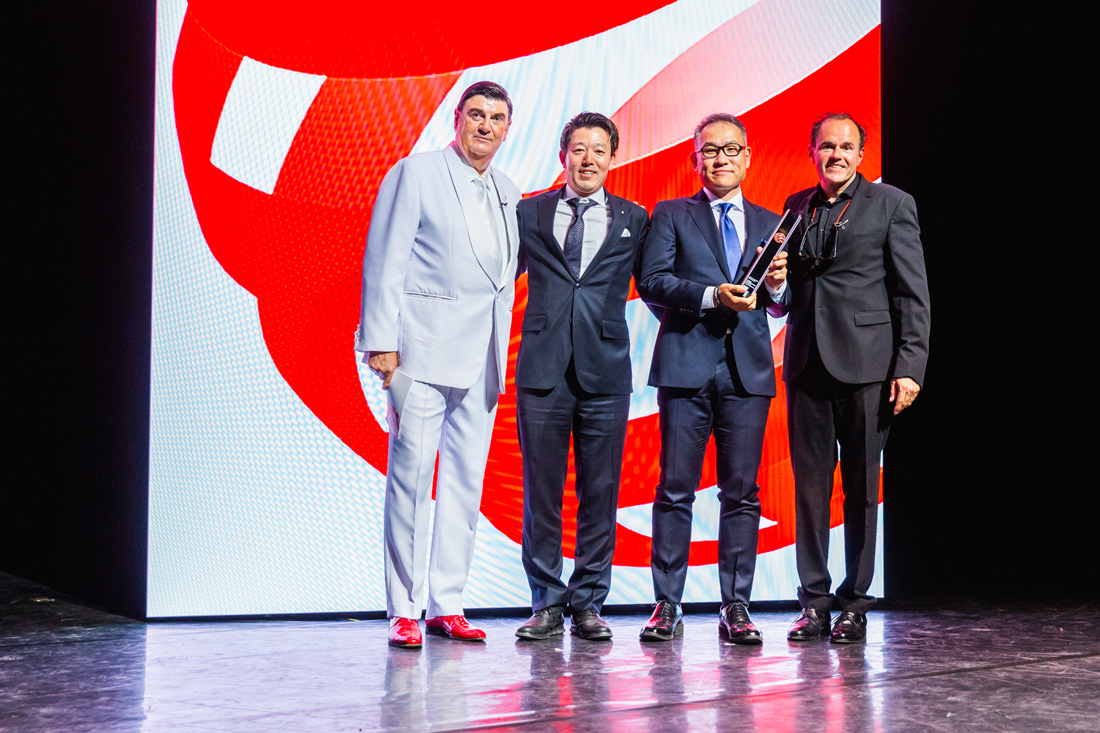 写真は「Red Dot Award Ceremony 2019」表彰式の様子。左から2人目は柳澤健司さん、3人目は宮宇地さん。