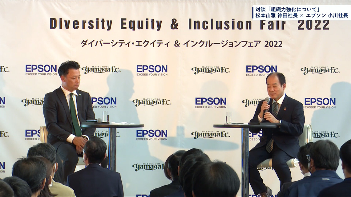 This session featured a discussion between two leaders from completely different fields—manufacturing and professional sports—both rooted in Nagano Prefecture. They discussed how to build strong organizations by embracing diverse talent and working toward their respective purposes.