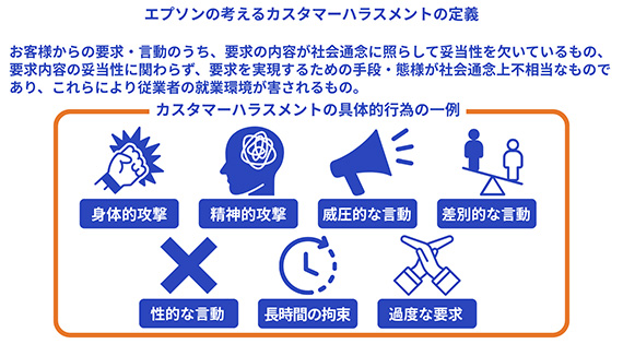 深刻なカスタマーハラスメントの事例を受け、エプソンは2025年3月に『国内グループ カスタマーハラスメントに対する指針』を制定し、社内外へ周知しています。