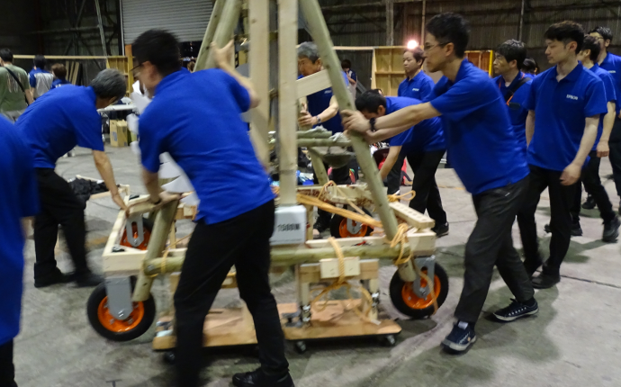 「ブランコ25m走」のチームと「スリッパ跳ばし」のチーム、それぞれに技術的な困難がありました。想定外のトラブル続きでしたし、イメージ通りに動かず、我慢が必要な時間が少なからずあった。それでも最後には、両チームともしっかり本番に間に合わせた。