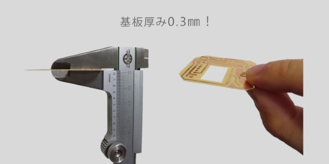 その厚みはわずか0.3mm。この薄い基板に対しても、メンバーは執念で不要な部分を見つけ出し、手作業でカットした。