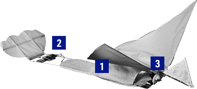 暫定候補の方式で実験機を試作。レギュレーションを意識してダミーの重りを載せた状態で飛ばし、数値化した上でその実力を比較した。慎重に検討を重ね、飛行方式を「羽ばたき」と「フライングディスク」に絞る。